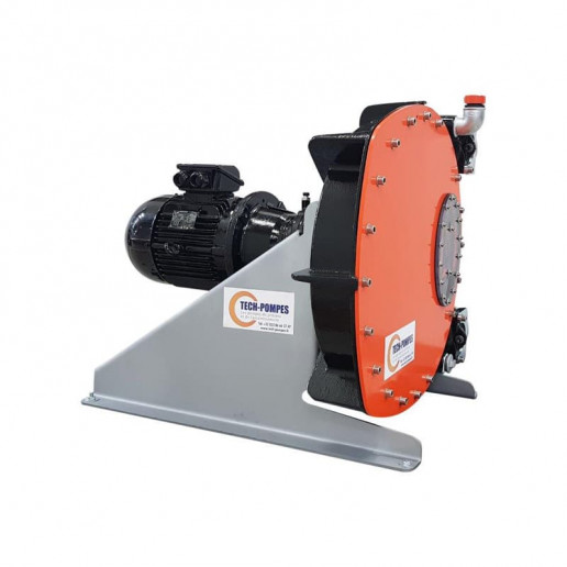 La rotor de la pompe est mis en rotation par le motoréducteur. Le pompage est réalisé par la compression du tuyau écrasé par les deux patins. Après le passage du patin, le tuyau reprend sa forme par effet d’élasticité, garantissant ainsi la qualité de l’aspiration et de l’amorçage. Mû par les patins, le fluide est aspiré à l’intérieur du tuyau, déplacé à l’intérieur de la pompe, puis refoulé.