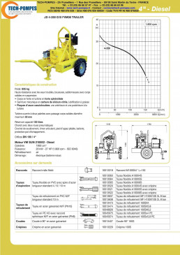 - Facilité d’installation : Equipée de 2 roues type cross, cette motopompe peut être installée sur des terrains très accidentés : Carrières, chantiers de Travaux Publics.
